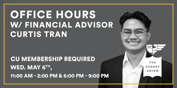 CU Membership Required Schedule a complimentary meeting at The Cedars Union with CU partner and financial professional Curtis Tran. Bring your burning questions on…